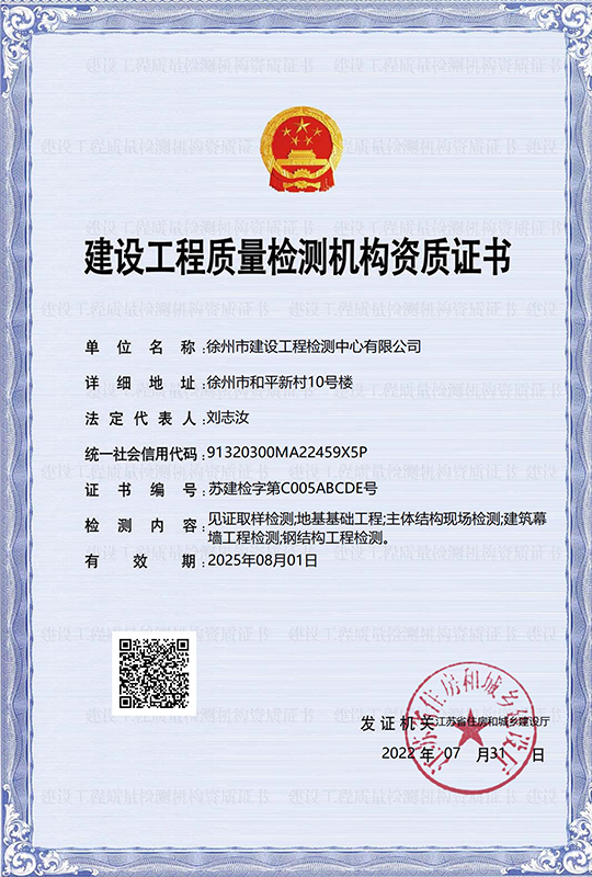 徐州市建設工程檢測中心有限公司(以下簡稱徐建檢測公司)是徐州市產(chǎn)城發(fā)展集團有限公司(以下簡稱產(chǎn)城集團)的全資子公司。徐建檢測公司前身為徐州市建設工程檢測中心,2018年事轉(zhuǎn)企改制,2020年4月,完成轉(zhuǎn)企改制資產(chǎn)劃轉(zhuǎn)工作。 徐建檢測公司是集檢測、檢驗、鑒定、咨詢等技術(shù)服務為一體、具有獨立法人資質(zhì)的綜合性第三方服務機構(gòu)。公司主要從事建設工程領(lǐng)域相關(guān)工程質(zhì)量檢測及技術(shù)咨詢服務,業(yè)務覆蓋地基基礎(chǔ)、建筑材料、建筑結(jié)構(gòu)、鋼結(jié)構(gòu)工程、市政工程、綠色建筑節(jié)能工程、建筑安全與施工設備、建筑防水、建筑水電、裝飾裝修、建筑物防雷、室內(nèi)環(huán)境、房屋安全鑒定、城市軌道交通工程等專業(yè)領(lǐng)域。......